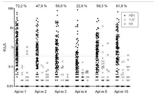 ①重組膜翅目毒液過敏原的IgE檢測被認(rèn)為可以提高膜翅目毒液過敏的診斷正確性。然而,對蜜蜂毒液過敏患者唯一可用的重組蜂毒(HBV)過敏原rApi m1的致敏頻率是有限的,這表明可能存在另外的蜜蜂毒液過敏原。②我們對蜜蜂毒液過敏病人進(jìn)行一系列蜜蜂毒液過敏原(組份)的敏感性分析。蜜蜂毒液過敏(HBV)的診斷(n = 144)是基于病史、皮膚試驗結(jié)果和對HBV的過敏原特異性IgE水平。采用ImmunoCAP分析IgE對6種無交叉反應(yīng)碳水化合物(CCD)的HBV過敏原的反應(yīng)性。