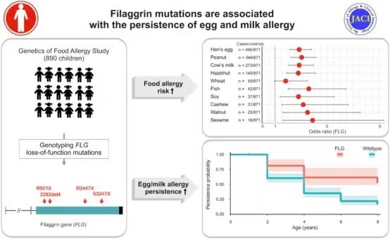 原標題:絲聚蛋白功能缺失突變與雞蛋和牛奶過敏持續(xù)相關