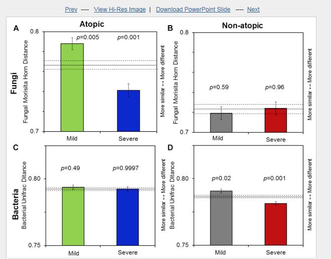 Indoor microbial communities: Influence on asthma severity in atopic and nonatopic children