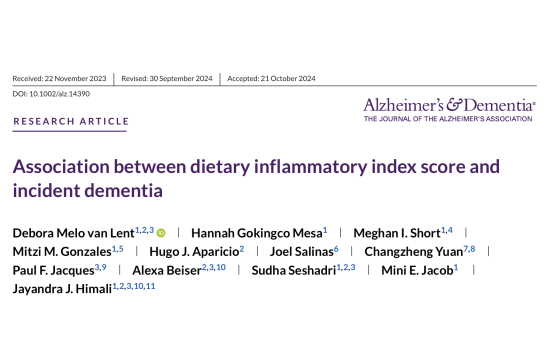 全球癡呆患者數(shù)量預計將在 2050 年大幅增加,目前在預防、阻止或逆轉(zhuǎn)癡呆進展方面的有效干預措施有限,需要重新考慮一級預防策略,飲食等可改變的風險因素值得關(guān)注??v向觀察性研究發(fā)現(xiàn)健康飲食模式與癡呆和 AD 風險降低顯著相關(guān),膳食干預試驗表明地中海飲食等可改善認知,飲食對認知健康的有益作用可能與調(diào)節(jié)全身炎癥有關(guān),而炎癥是癡呆的假設致病途徑之一。膳食炎癥指數(shù)(dietary inflammatory index,DII)可衡量飲食的炎癥潛力,有助于理解飲食對炎癥調(diào)節(jié)及疾病結(jié)果的影響,在臨床和公共衛(wèi)生領域有潛在應用價值,但此前關(guān)于DII與全因和AD癡呆發(fā)病的縱向關(guān)系研究存在局限性。